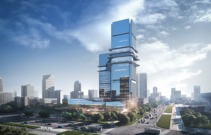 ? ? 本項(xiàng)目為高鐵77號地商業(yè)與服務(wù)業(yè)設(shè)施地塊,項(xiàng)目以打造開放的城市門戶、建設(shè)高端的商業(yè)辦公地標(biāo)建筑、營造舒適的公園辦公環(huán)境為設(shè)計(jì)策略,為城市增加生機(jī)活力。