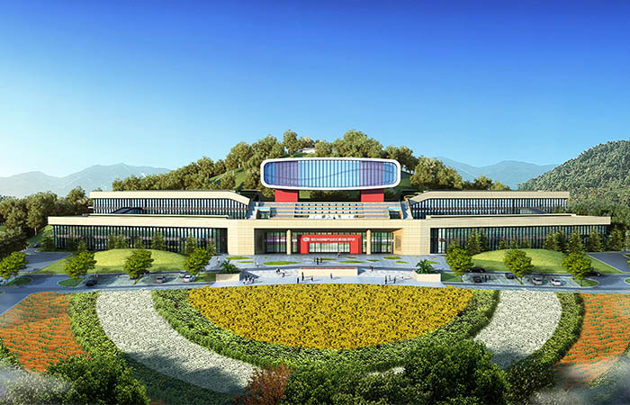 整個建筑的設(shè)計,把建筑作為了山體景觀的一部分,形象跟山融為一體,對周邊自然環(huán)境有一定的提升。
