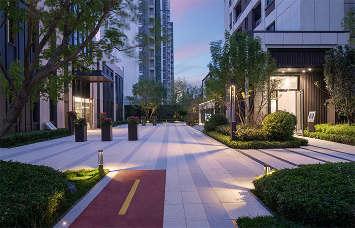 地塊形成南北向和東西向兩條景觀軸,南北主軸為本項(xiàng)目景觀設(shè)計(jì)重點(diǎn)部位,力爭打造“園中有筑,筑即為景”的建筑與景觀結(jié)合的典范中軸系統(tǒng)。地塊形成四個(gè)分區(qū)。序列性景觀節(jié)點(diǎn),形成多重禮儀空間,傳承中國的空間禮序。通過中軸建筑的錯(cuò)落式布局,形成多個(gè)半圍合式的居住組團(tuán)空間。