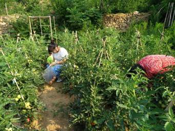 運動完畢,來菜園采摘,綠色無公害,真正長紅的西紅柿,樹上的桃子、地里的西瓜、茄子、豆角等。