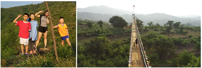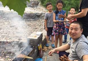 夕陽西下,全員到達村西廣場,休整之暇,孩子開心的跑到邊上撿石子玩耍。