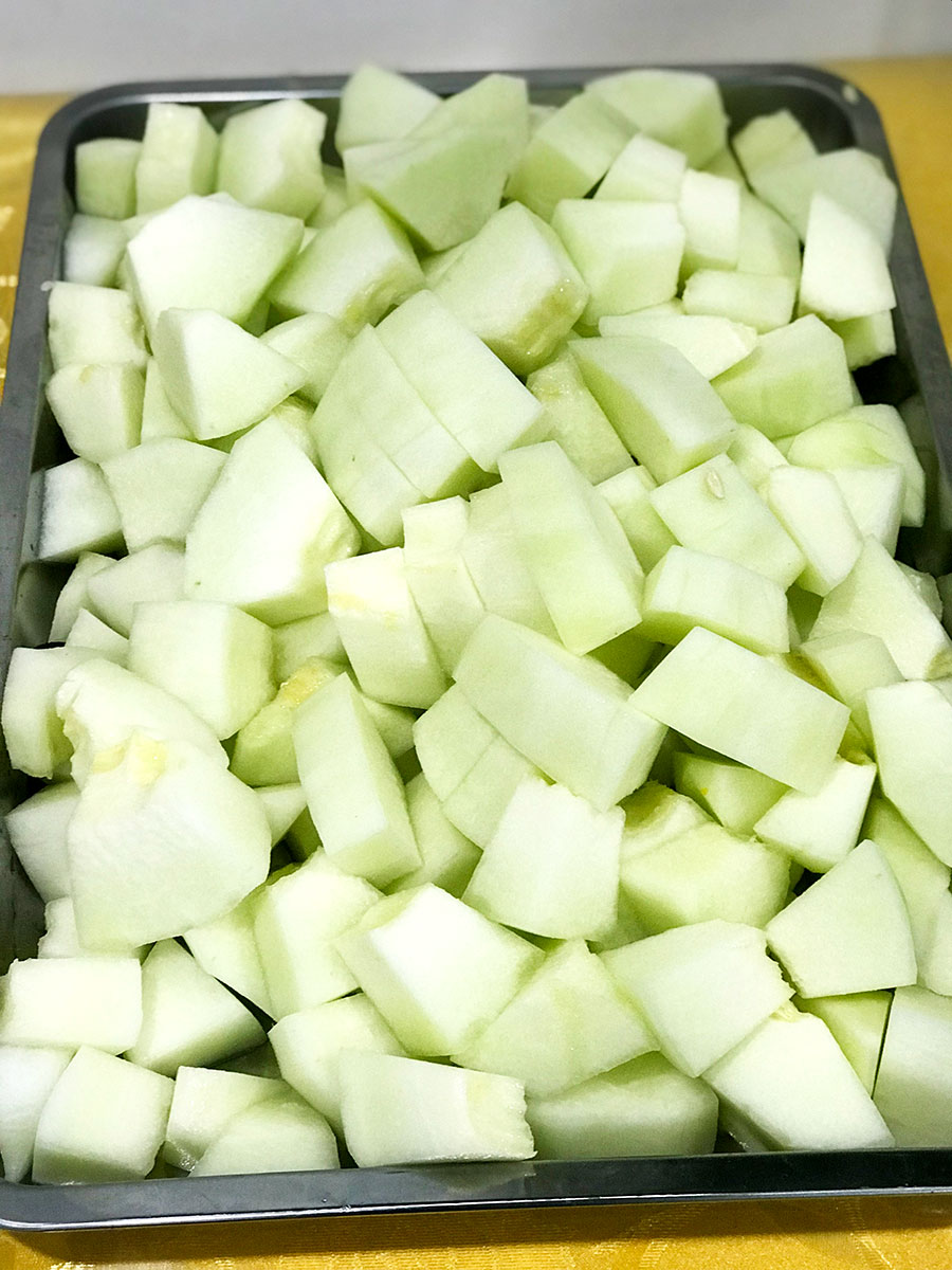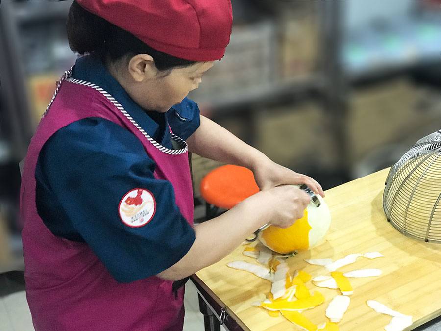 水果去皮又去籽,主食一上場,滿廊都是飯香---四菜一湯