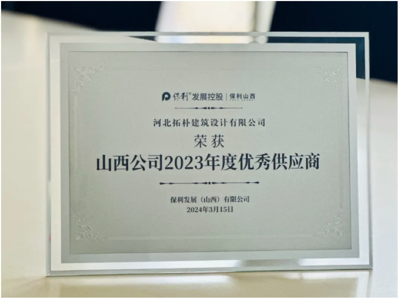 喜報|拓樸設計山西分公司榮獲“保利發(fā)展2023年度優(yōu)秀供應商”獎