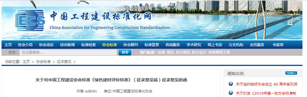 關(guān)于對(duì)中國(guó)工程建設(shè)協(xié)會(huì)標(biāo)準(zhǔn)《綠色建材評(píng)價(jià)標(biāo)準(zhǔn)》(征求意見稿)征求意見的函