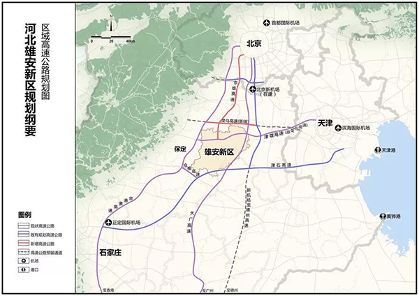 完善高速公路網(wǎng)。構(gòu)建“四縱三橫”區(qū)域高速公路網(wǎng)。“四縱”為京港澳高速、大廣高速、京雄高速(含新機(jī)場(chǎng)北線高速支線)、新機(jī)場(chǎng)至德州高速,“三橫”為榮烏高速新線、津雄高速、津石高速,實(shí)現(xiàn)新區(qū)60分鐘到北京、天津,90分鐘到石家莊。加強(qiáng)新區(qū)與天津港(9.140, -0.19, -2.04%)、黃驊港交通聯(lián)系,暢通新區(qū)出海通道。
